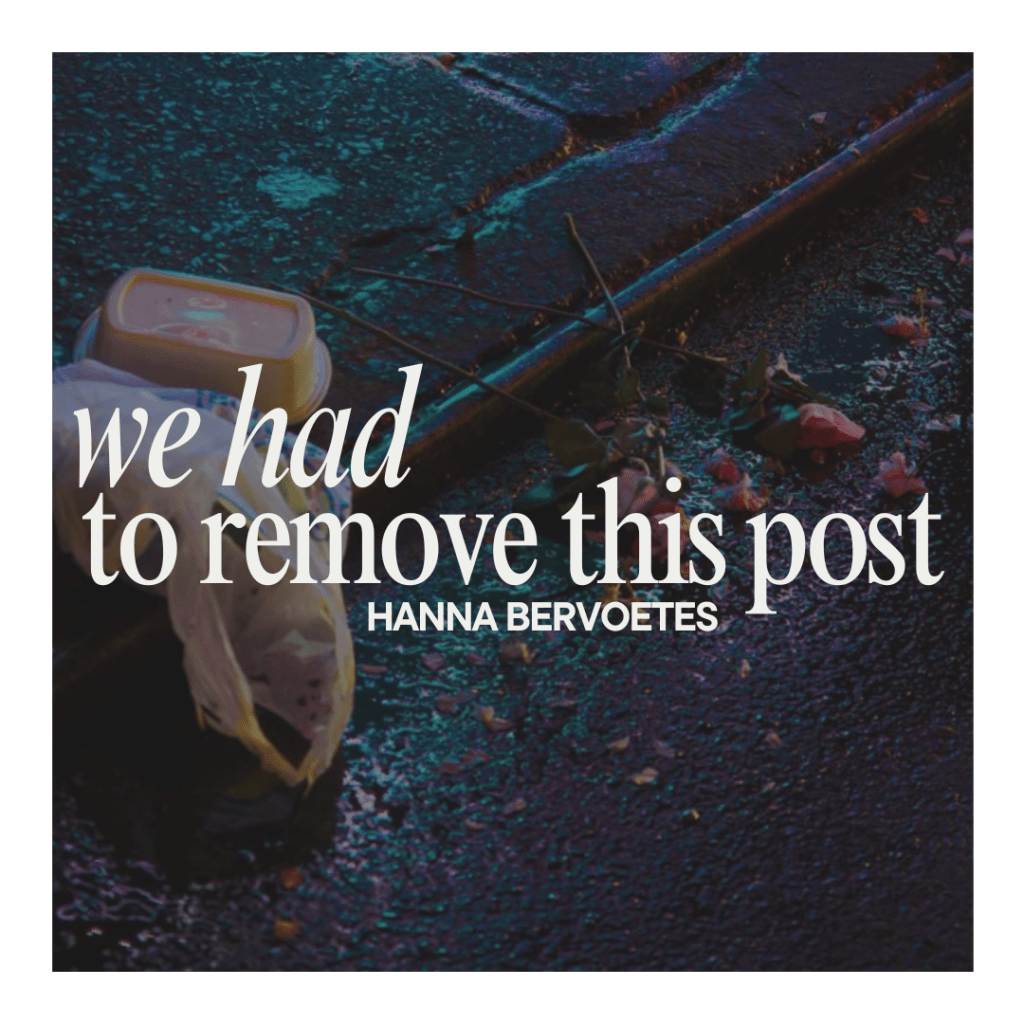 ‘We Had to Remove This Post’ by Hanna Bervoetes is a novella that follows a woman named Eva, who works as a content moderator for a large tech company, tasked with reviewing and removing harmful, graphic, or disturbing content from social media platforms.