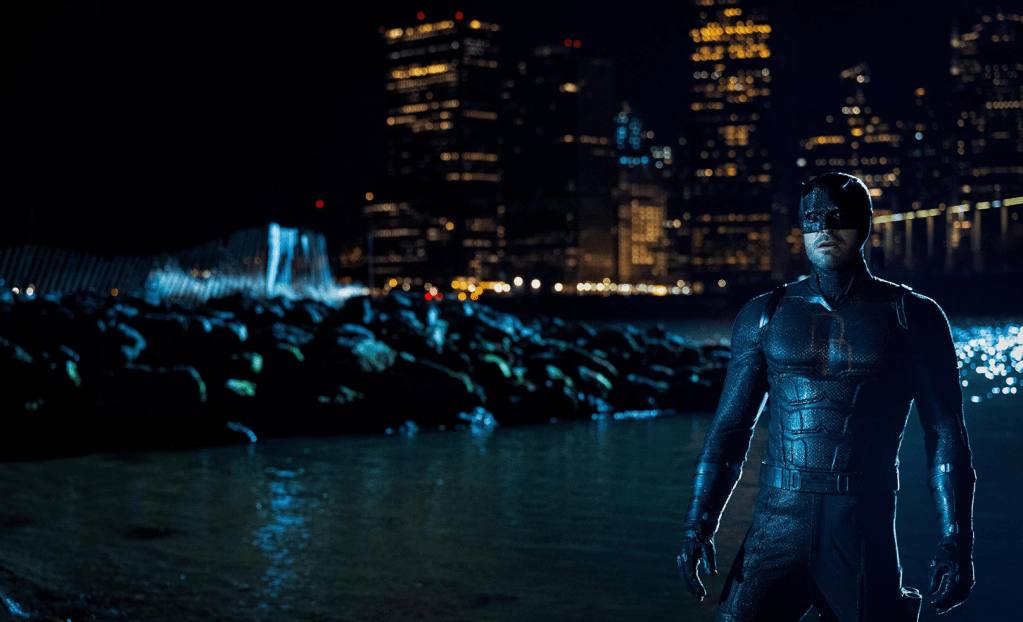 We’re immediately dropped into action, opening with Daredevil doing what Daredevil does best… beating up bad guys. This time, the fight takes place on a boat in the middle of a river called The Northern Star. Two things stood out right away: the cinematography is (so far) killer this season, and Daredevil is not wearing his traditional red suit. Instead, he’s in black.